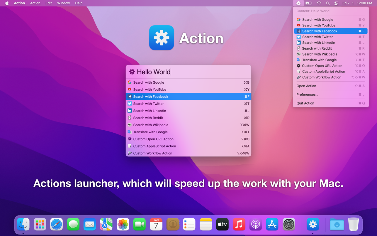 Actions launcher, which will speed up the work with your Mac.