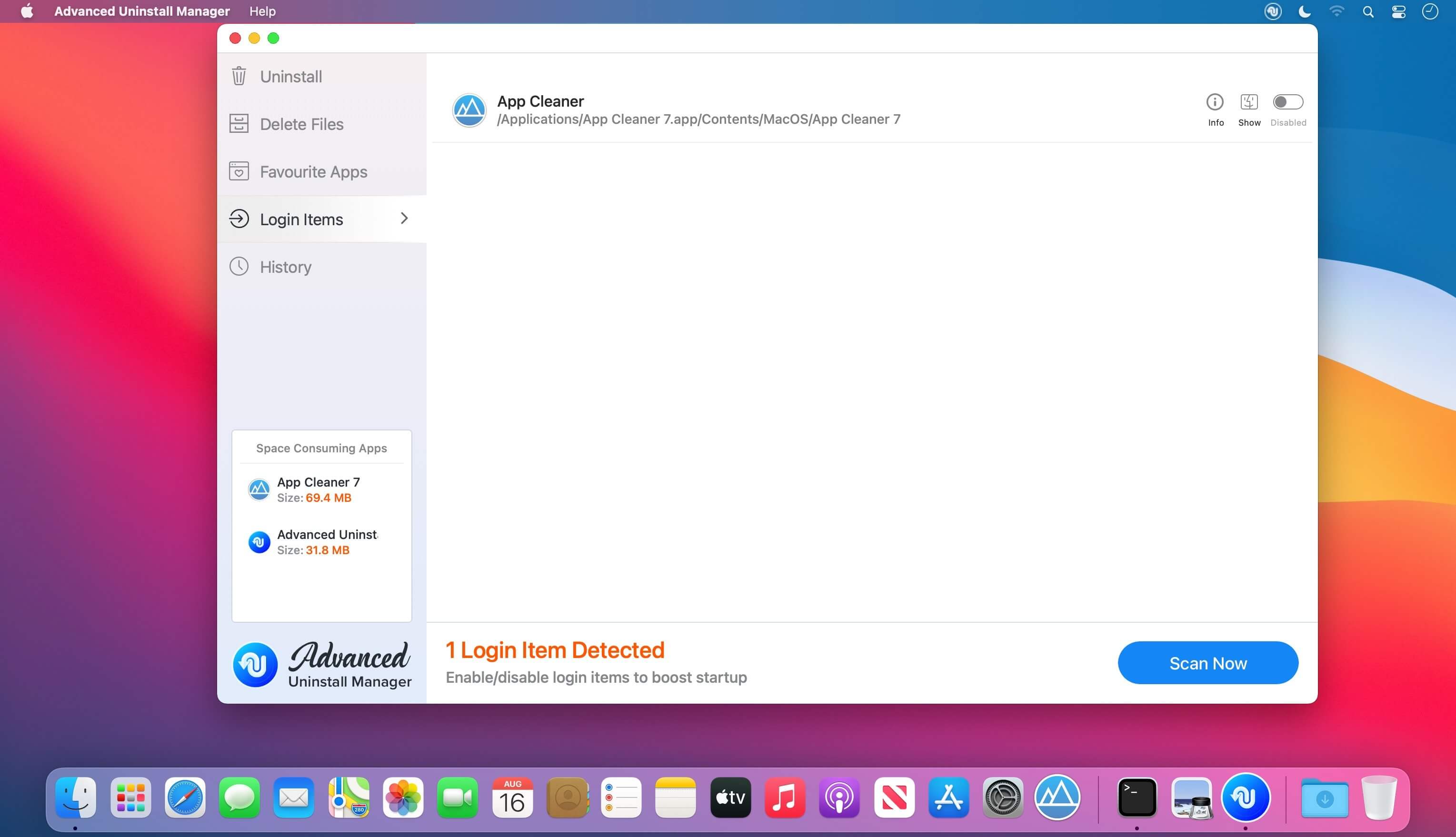 - Login Items – Don’t know what might be slowing down the bootup process on System? Worry not, Advanced Uninstall Manager scans the system for all startup programs and login items allowing the user to disable the unwanted ones. This helps to boost boot time.