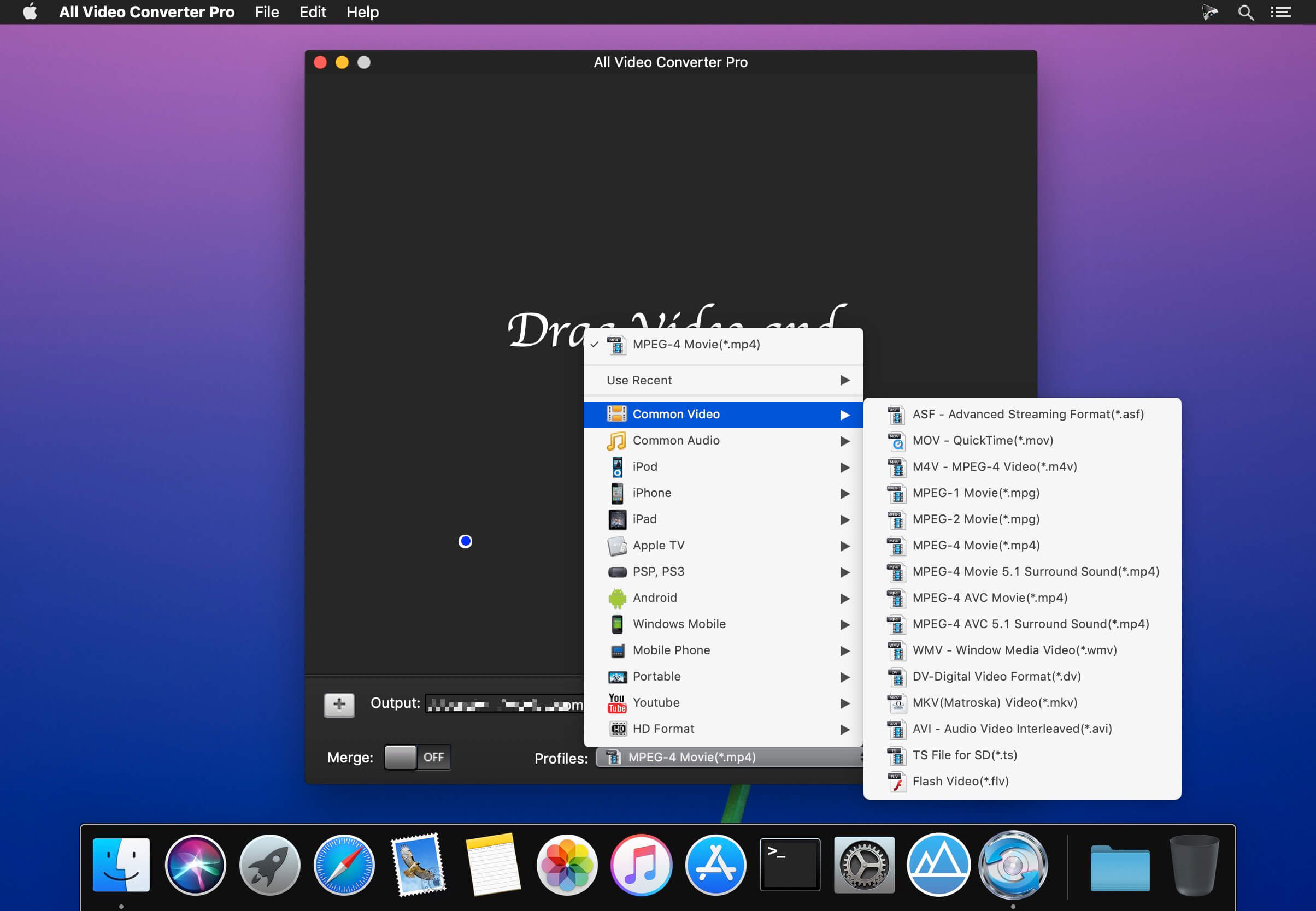 All Video Converter Pro can convert different video (Common Video, HD video, camera video, web video) and audio files for importing to sorts of portable device, applications and website, such as iPad, iPod, iPhone, Apple TV, PSP, iTunes(mp4, mov), iMovie(mp4, mov), YouTube , etc.It’s the easy way to make your Mac friendly with all audio and video formats.