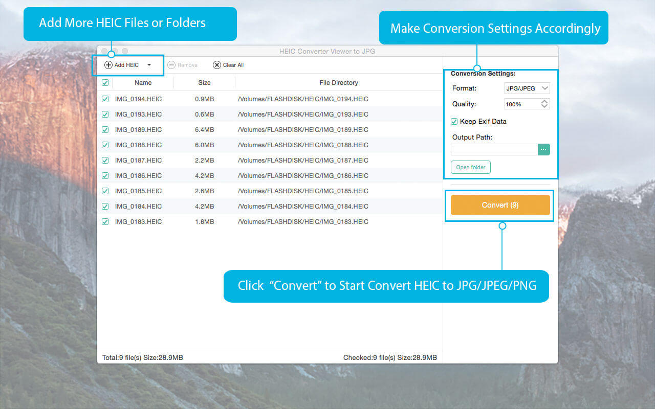 - Support batch conversion of HEIC files to save your time and involve less effort.