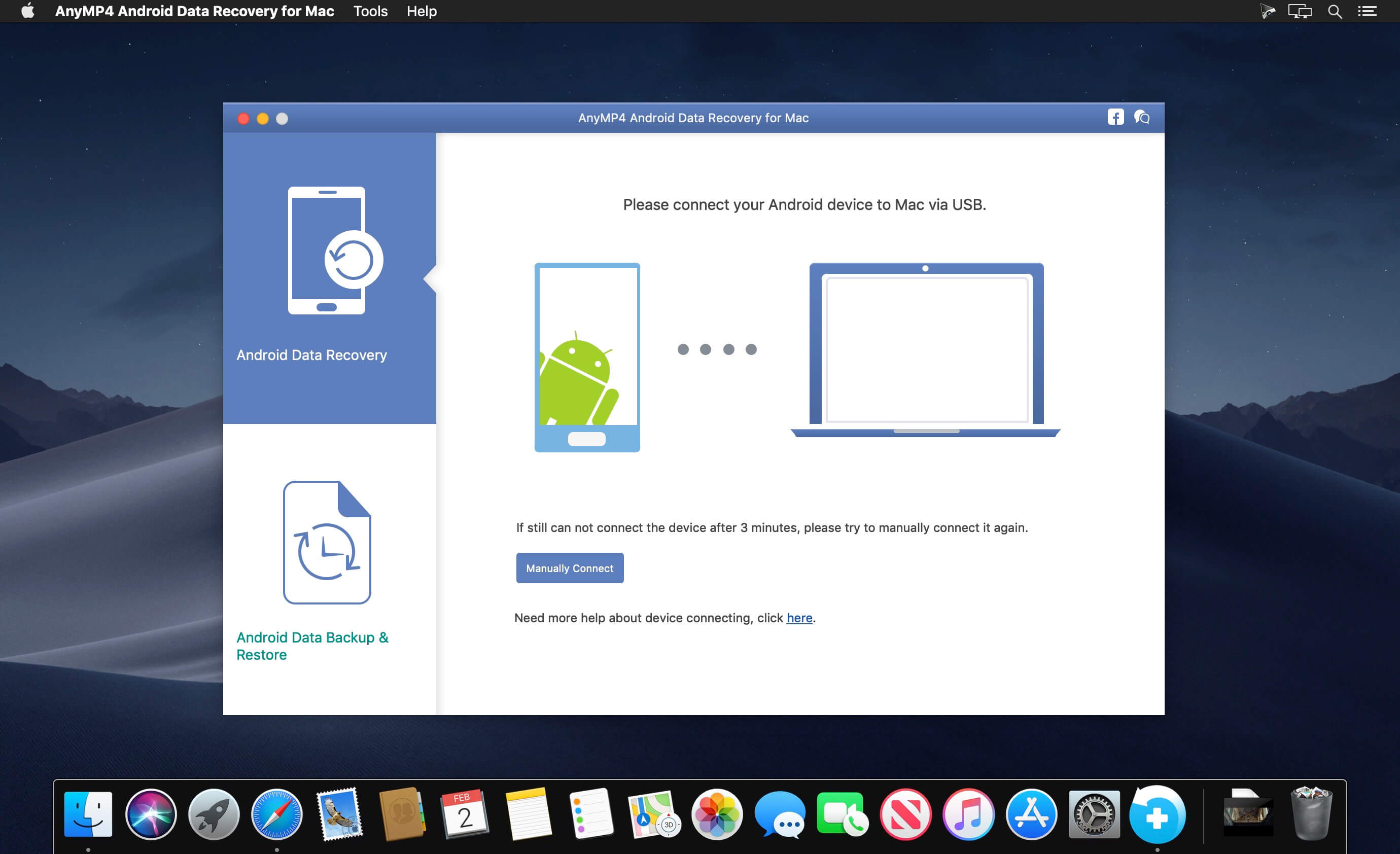 Data like contacts/SMS/photos/WhatsApp/videos/music/call history/documents are easily deleted, and the phone’s limited storage space is something demanded endlessly. Things always happened when you need some deleted data like contacts/SMS/photos, but finally end with searching failure. Don’t get into panic when you lost some important Android data which still count very much to you, whether the data are accidentally deleted text content like contacts, messages, call history, message attachments, or lost media files like photos, pictures, videos, music, even app data like WhatsApp chat messages and attachments, and documents in TXT, DOC, ZIP, etc. AnyMP4 Android Data Recovery for Mac has a powerful function to recover Android data on Mac (macOS Catalina supported), which will help you retrieve the lost or deleted data from Android device to Mac.