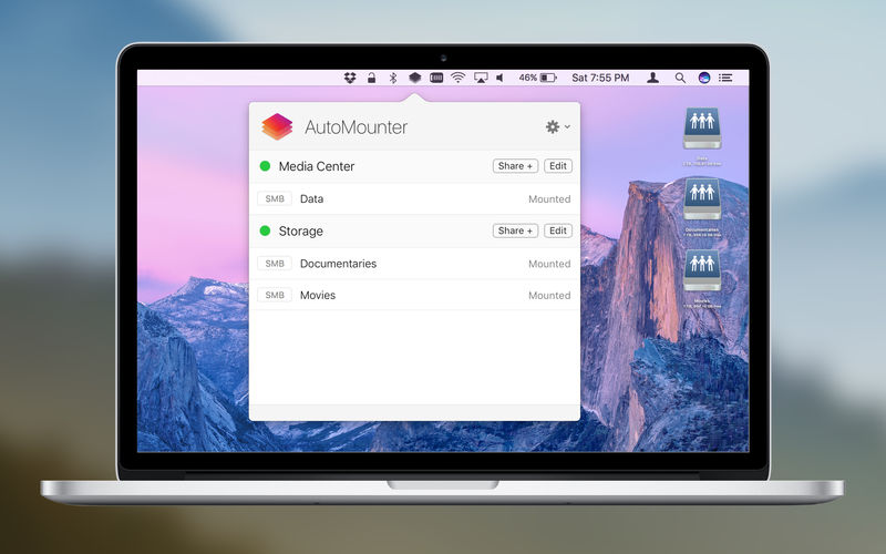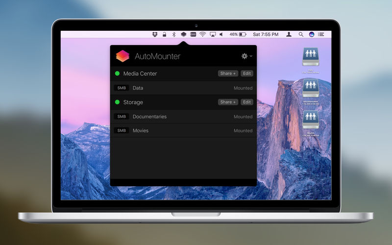 AutoMounter is a sleek and powerful menu item designed to automatically mount your network shares.