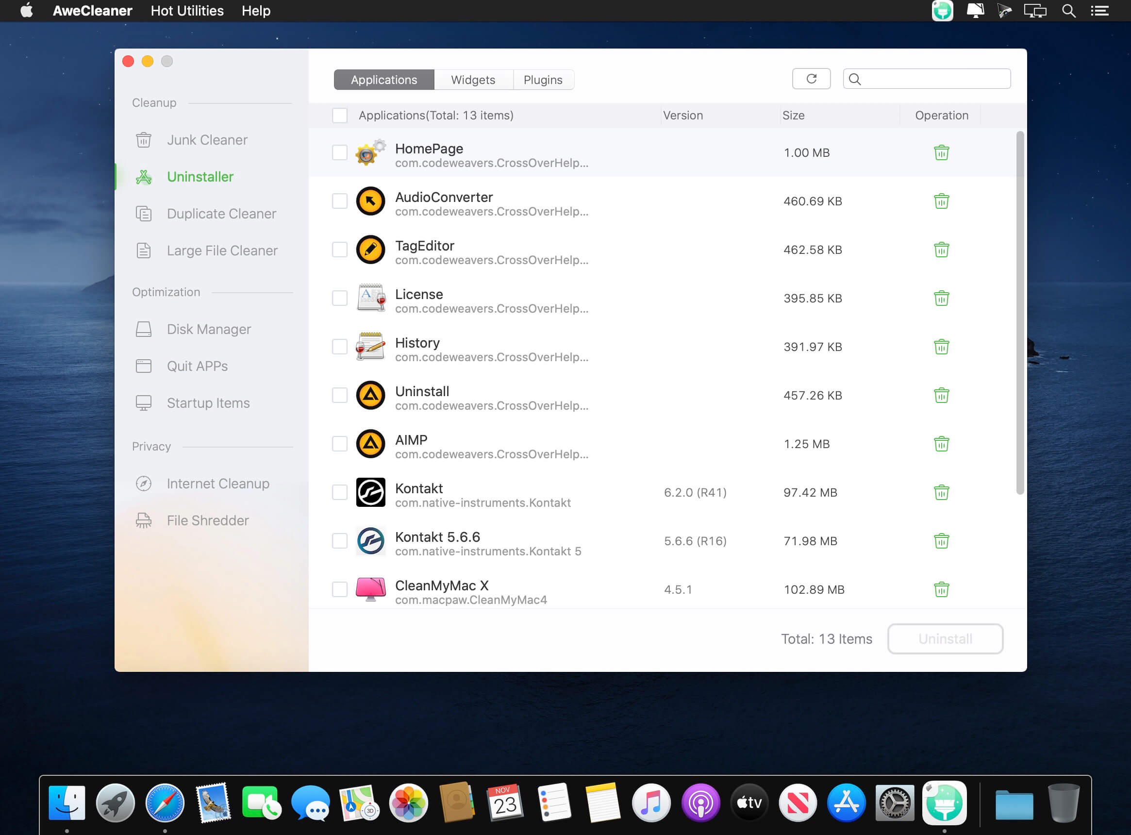 Mac Uninstaller – AweCleaner can help Mac users uninstall unwanted apps, plug-ins, one by one or in batches. It also will remove all leftovers of uninstalled applications to get more free disk space. Duplicate Finder – The smart duplicate finder will help Mac users easily find and remove duplicate files on Mac.