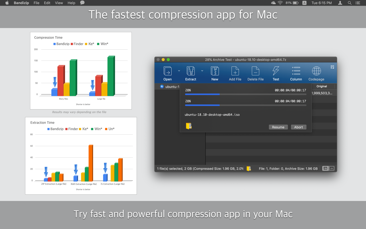 - Up to 6 times faster compression than the Finder using multi-core