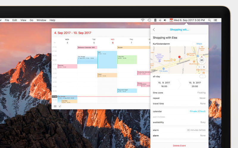 The most complete menu bar calendar for events & reminders! Appointments and ToDo’s, meetings and deadlines, birthdays and dates – make the most of your time with Calendar 366 II! Anything a calendar can do, Calendar 366 II can do better – and all functions can be adjusted easily and intuitively.