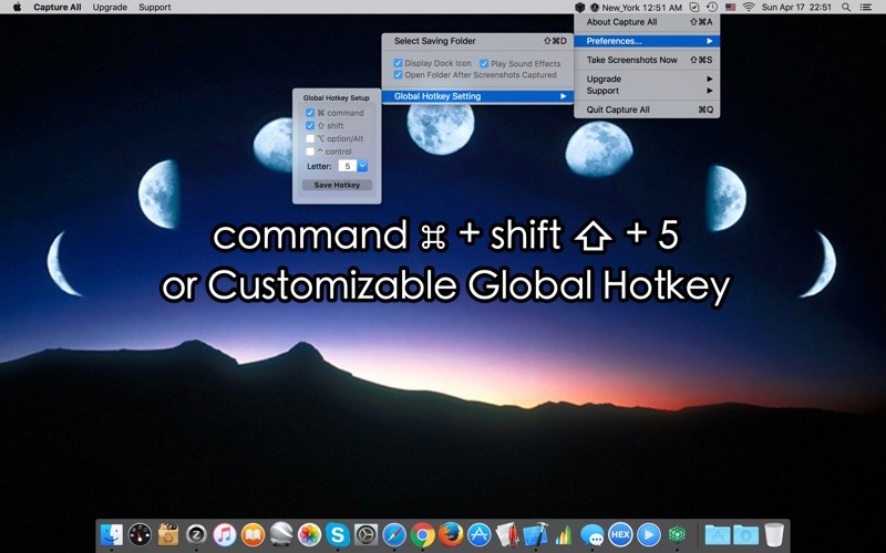 However, with “Capture All”, ALL of your open windows will be captured individually with the press of a single hotkey – no hassle, no delay! And the default hotkey is “command + shift + 5”.