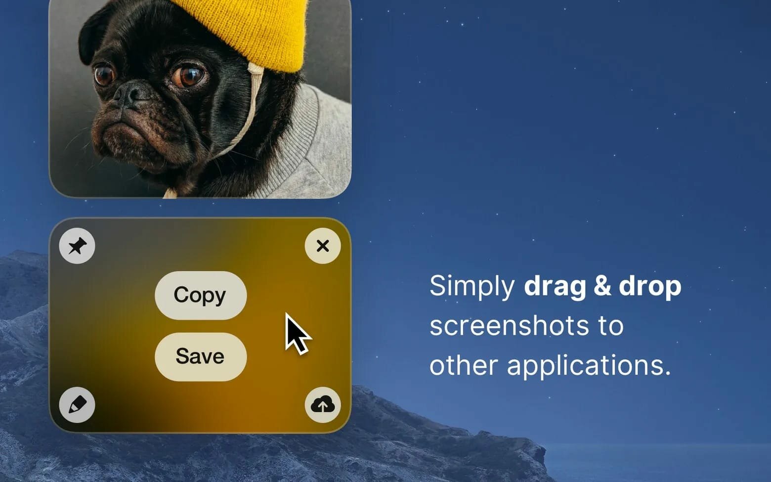 Our overlay makes sharing a breeze. Instantly save, copy or drag & drop screenshots or screen recordings to other apps. Whatever your workflow looks like, it’s going to fit.Annotate