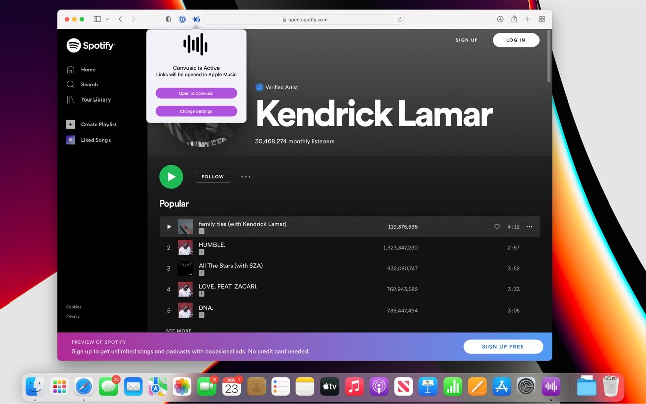 Convusic lets you automatically open links from Apple Music, Amazon Music, Deezer, Pandora, Spotify, Tidal, and YouTube Music in any other music app without lifting a finger.