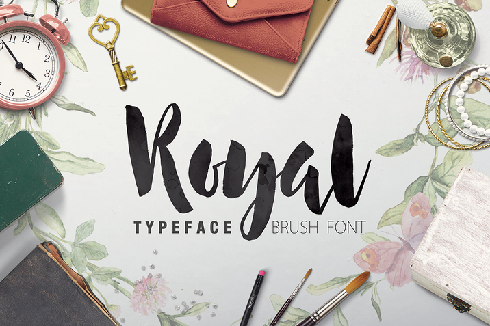 Name : Royal Files : File Size : 143.64 KB Vector : Yes Web Font : Yes Royal is a brand new, hand made brush font. You can use this awesome typeface in watercolor themed, retro and vintage themed designs or logos. Link for more information: https://creativemarket.com/crowstudio/291280-Royal