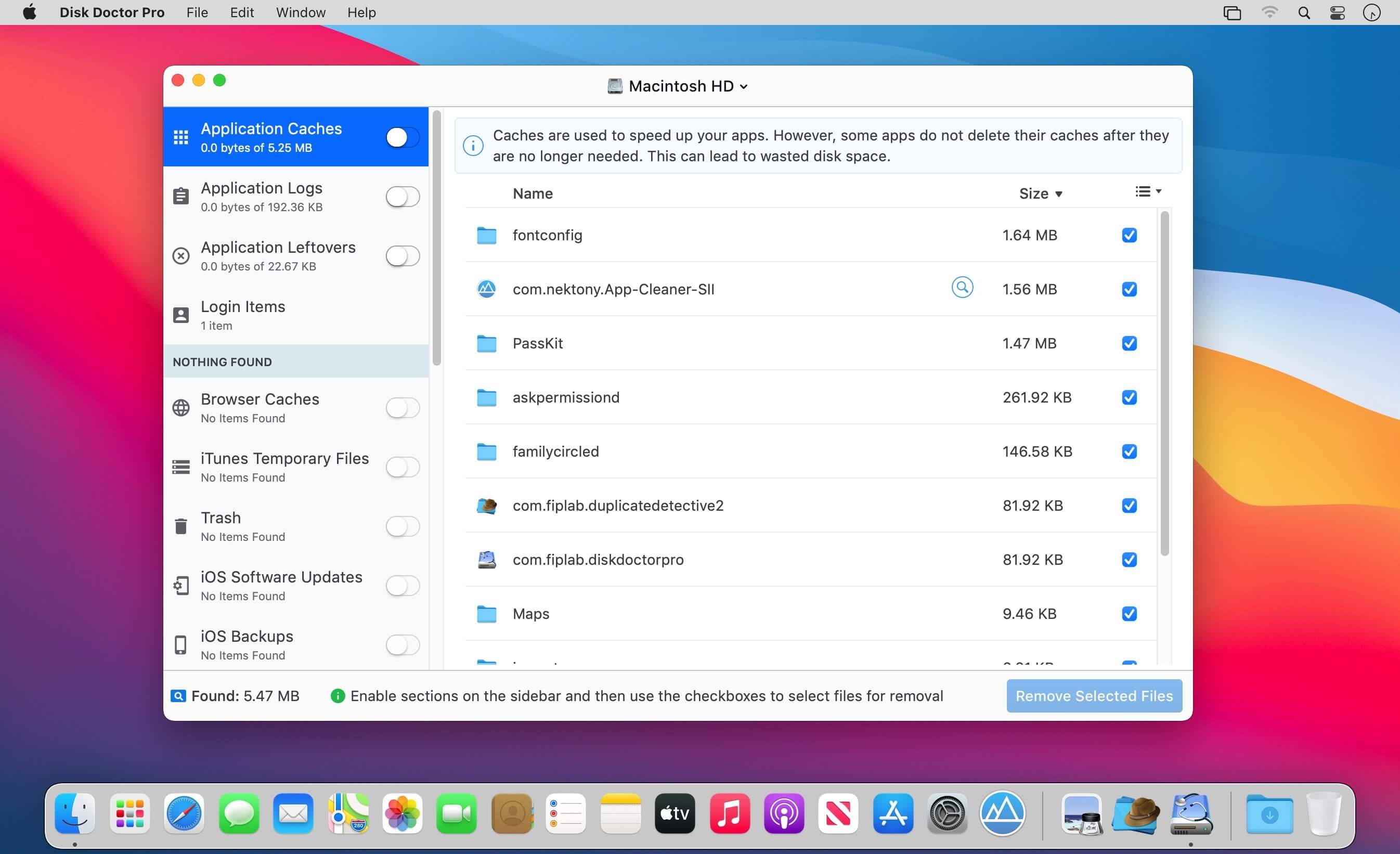 Disk Doctor Pro is our all-new and ultra-powerful disk cleaning app that is capable of removing gigabytes of unneeded files from your Mac within just a few minutes. The app automatically scans your Mac’s hard drive and quickly displays a huge range of files that can be safely removed to free up valuable disk space and improve system performance.