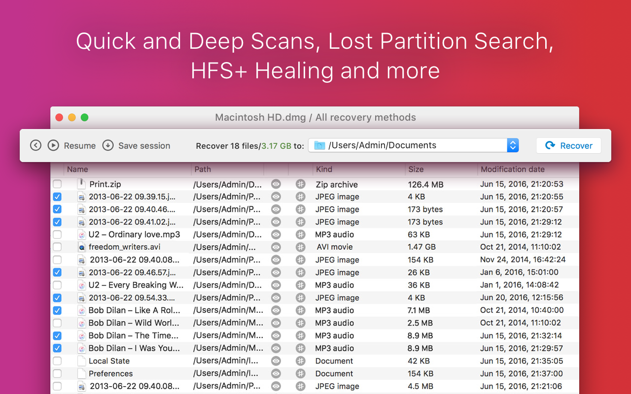 Disk Drill Media Recovery is the most user-friendly data recovery app for Mac. Disk Drill can recover your lost pictures and photos, music, documents, applications, videos and other data.