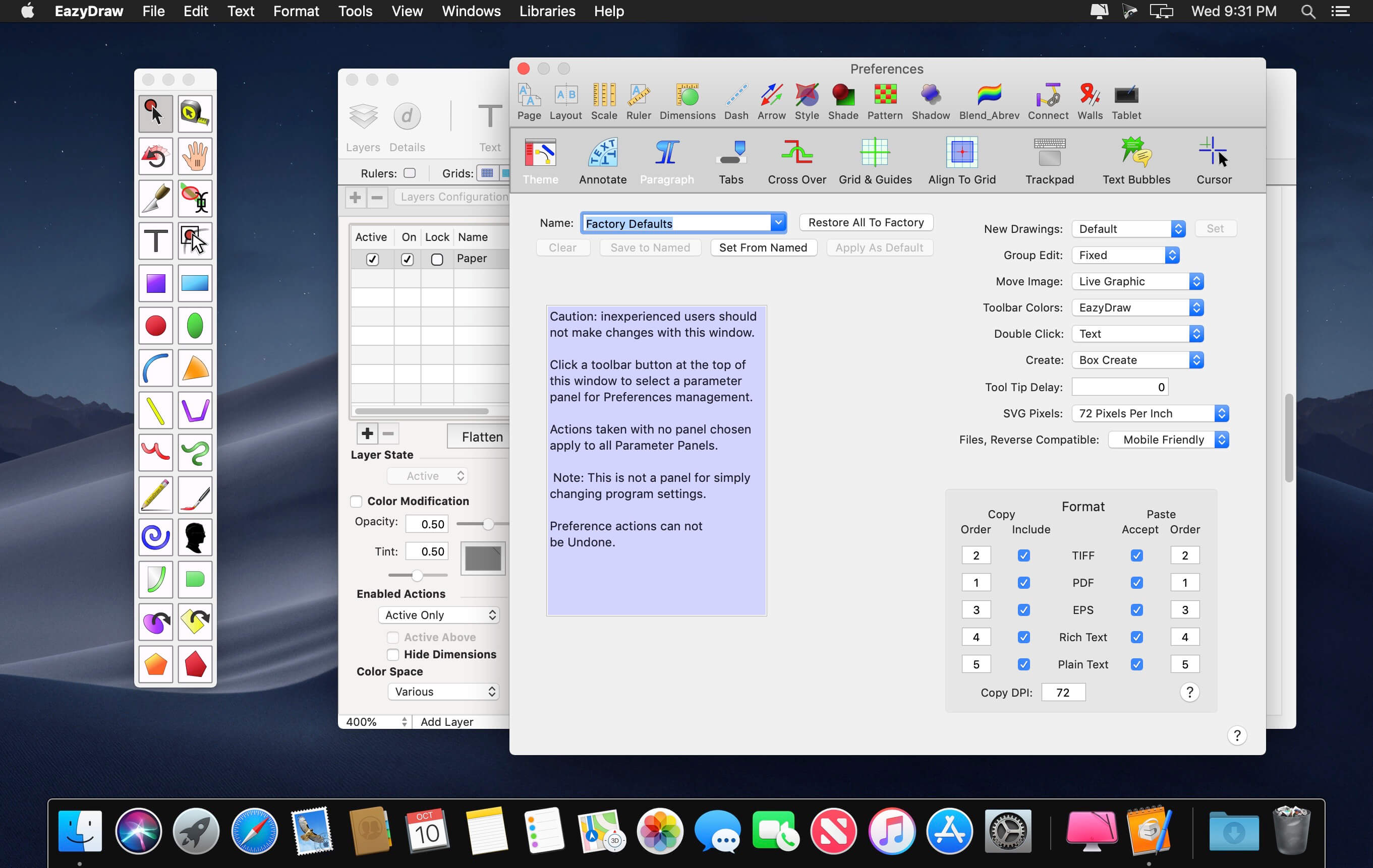 EazyDraw provides a balanced feature set that includes tools needed for technical drawing, Web and app graphic design, print publishing, logos, page – text layout and more. Easy enough for everyone, but with the depth your project will need.