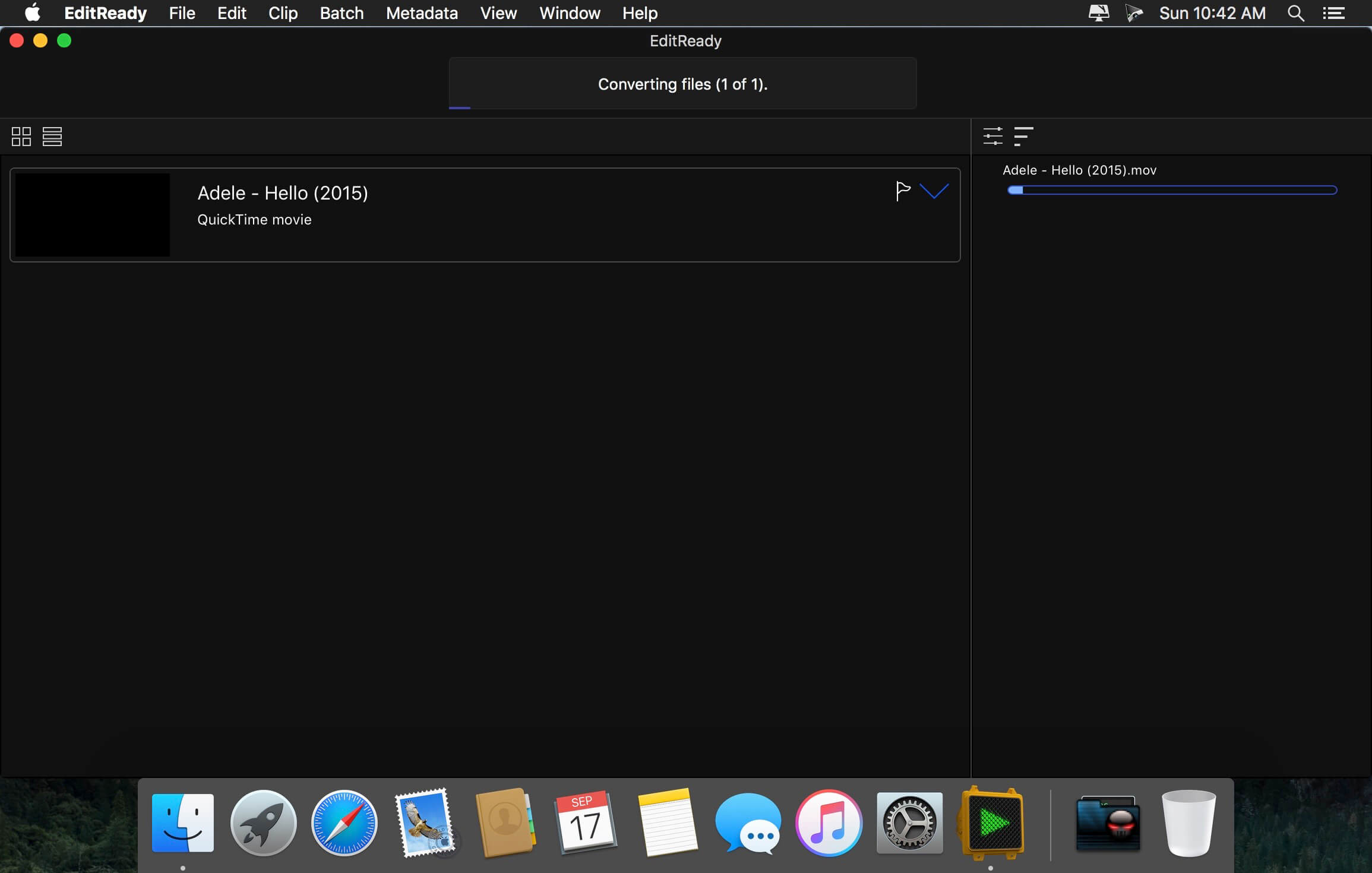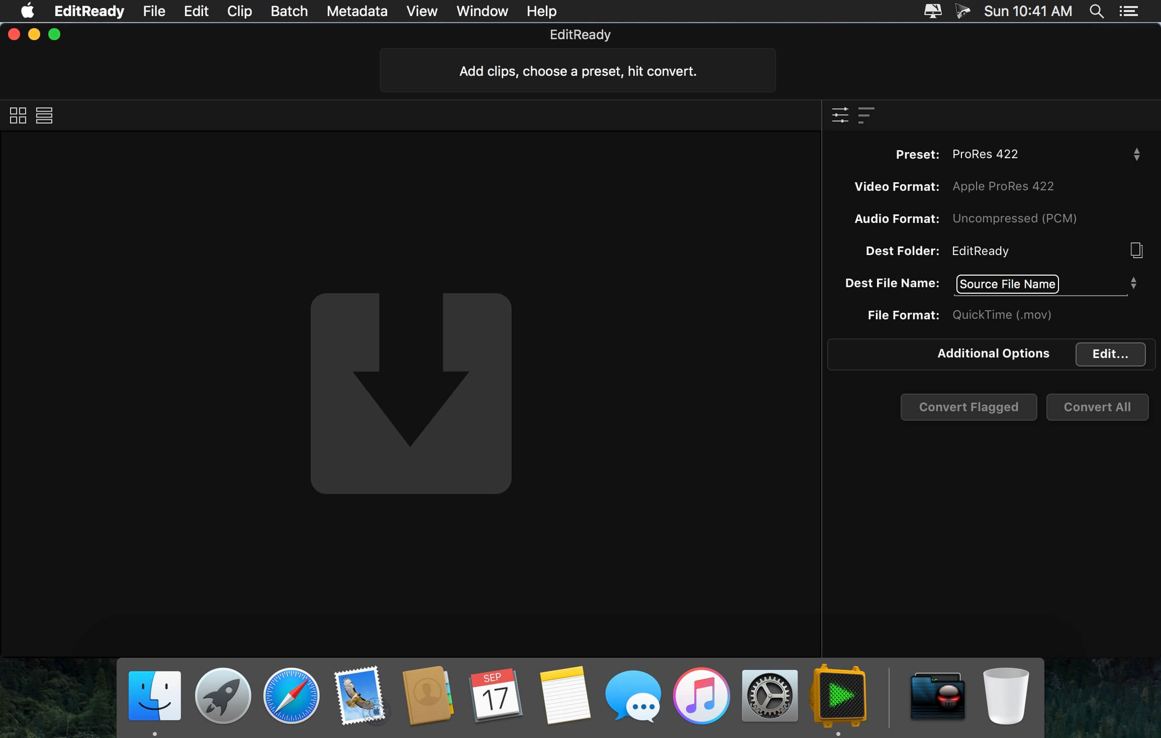 EditReady provides easy, fast and powerful transcoding for video professionals, without an overwhelming interface or outdated format choices. MOV, MP4 and MXF media can all be quickly converted to edit ready quicktime movies in ProRes or DNxHD.