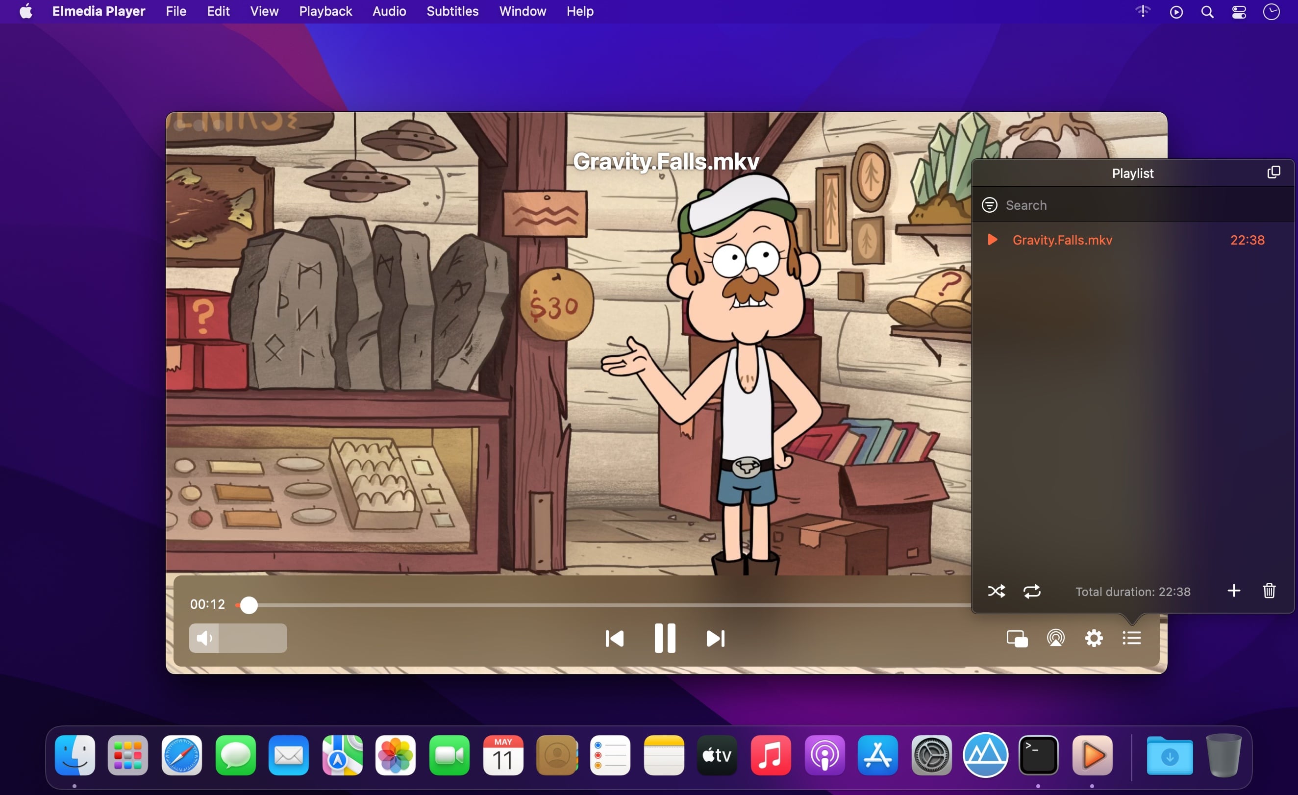 Elmedia Player is a video and audio player that will play virtually any file you throw at it, be it MP4, AVI, MOV, SWF, DAT, MKV, MP3, FLAC, M4V, FLV or any other common format. No need for additional codecs, plugins – this app has everything you need for your files playback.