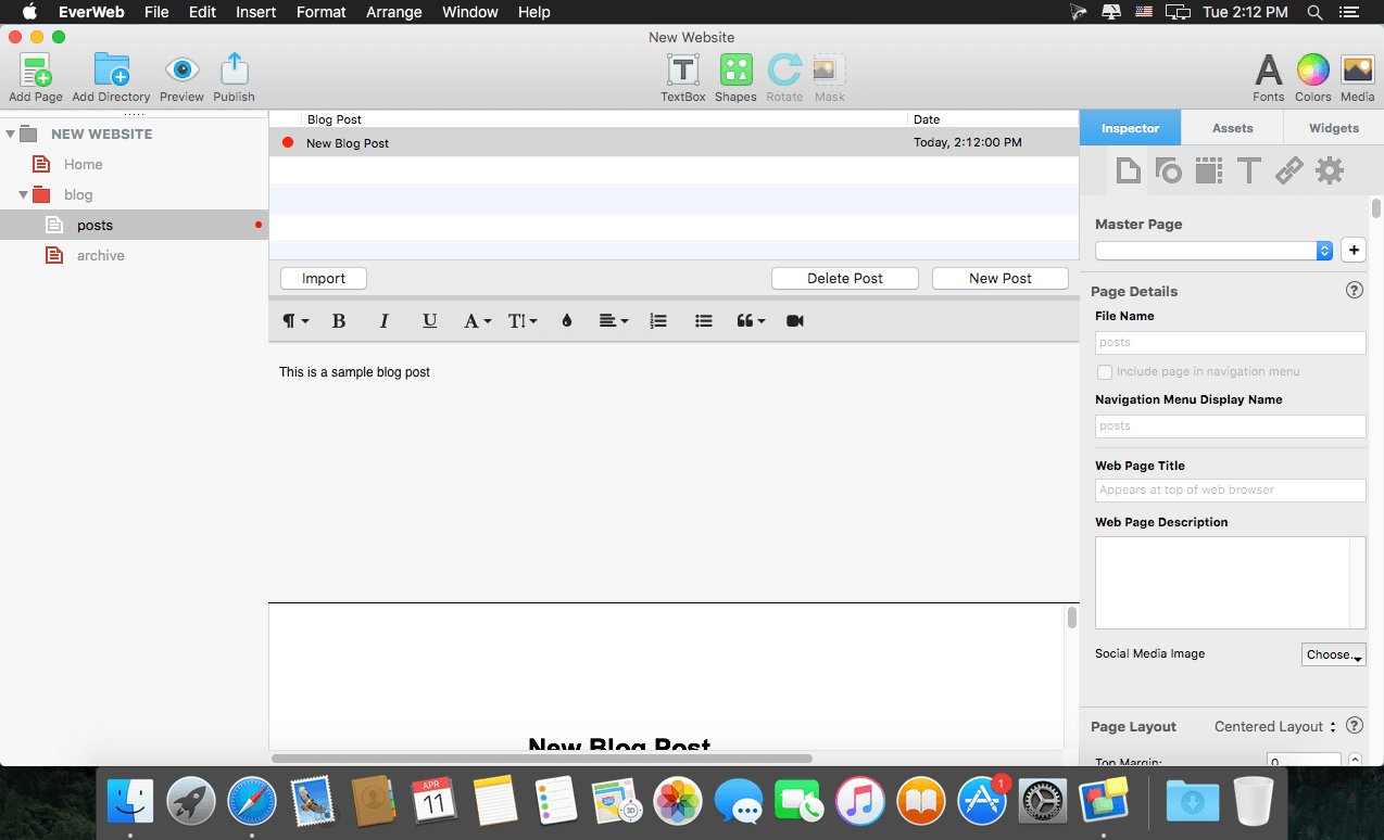 EverWeb even creates mobile websites that look great on iPhones and iPads and includes powerful features such as: drop-down menus, social media integration, built-in SEO, Google Fonts support and so much more.