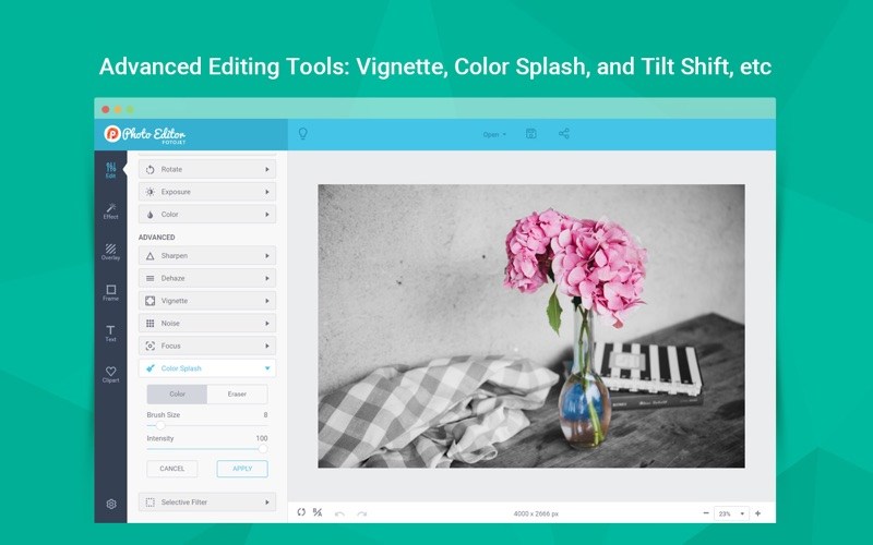 - Manage Selective Filter effect to enhance the selected part of your photo.