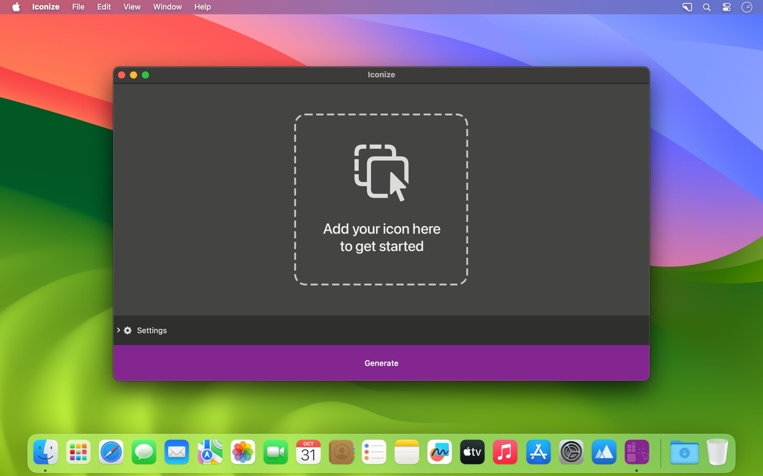 Just drag’n’drop your icon image and Iconize will take care of the rest. You may use any image format your Mac recognizes!