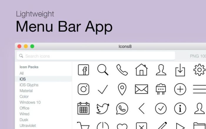Icons8 allows users to search icons and insert directly into Photoshop, Xcode, or any other program.