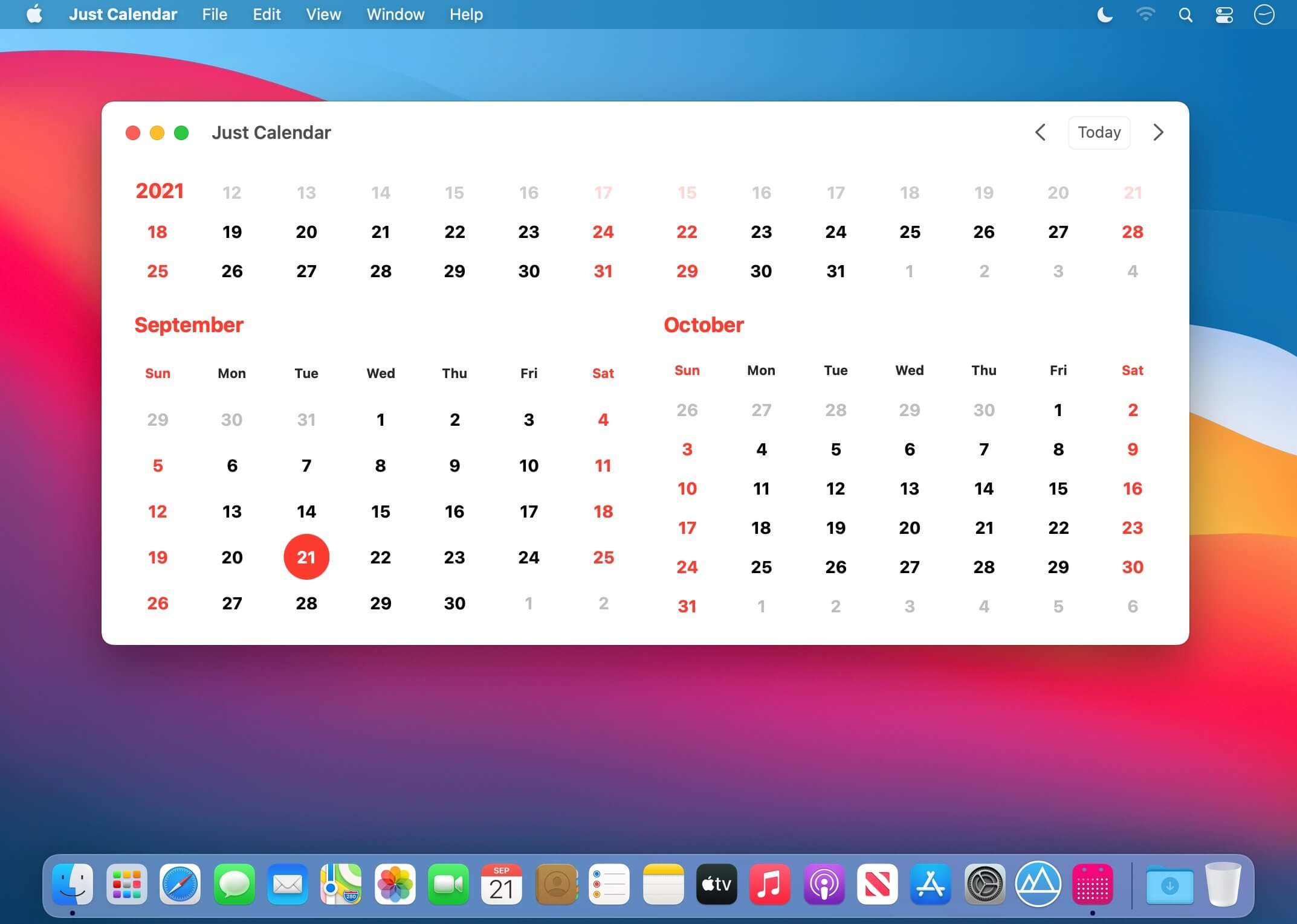 Just Calendar – Super simple calendar widgets for macOS Big Sur.
