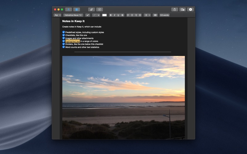 - Keep It now indexes attachments on notes, rich text with attachments documents (RTFD), and mail messages, performing text recognition on PDF and images attachments, if necessary.