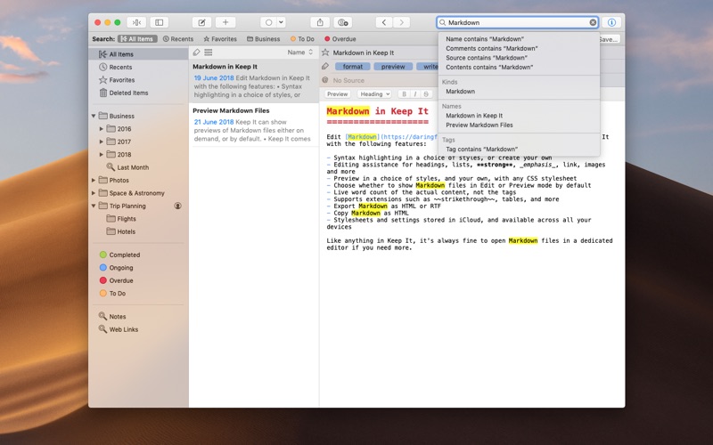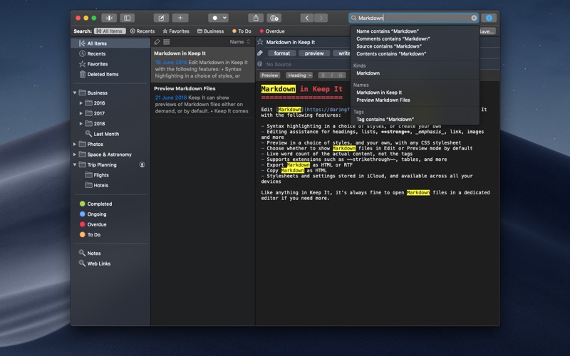 - Search everything in Keep It: names, tags, file contents, dates, kinds and more
