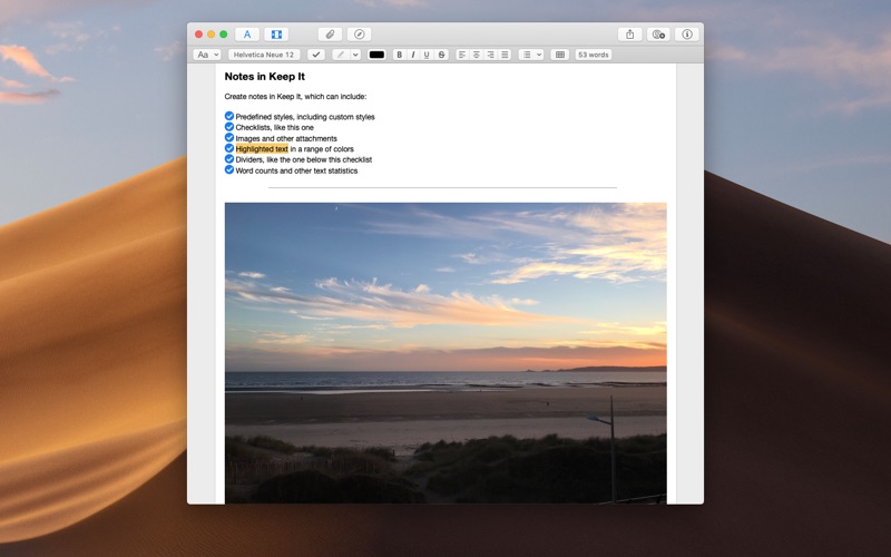 - Notes with styles, checklists and attachments that look good and read well on all your devices