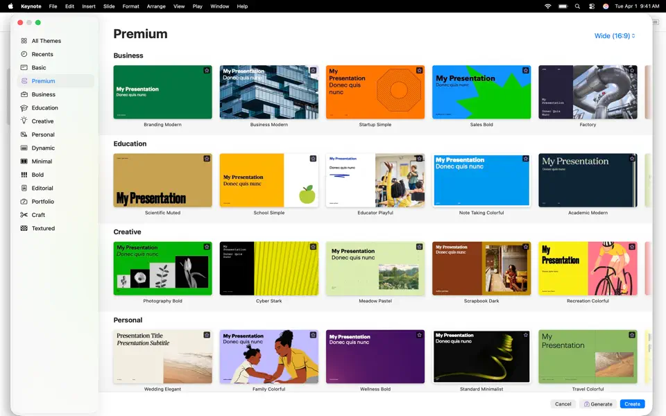 Create memorable presentations on iPhone, iPad, Mac, and Apple Vision Pro. Start with an Apple-designed theme and add text, images, charts, and shapes. Bring it all to life with cinematic animations and transitions. Confidently present from anywhere, in person or virtually, and take turns controlling a presentation in multi-presenter slideshows.