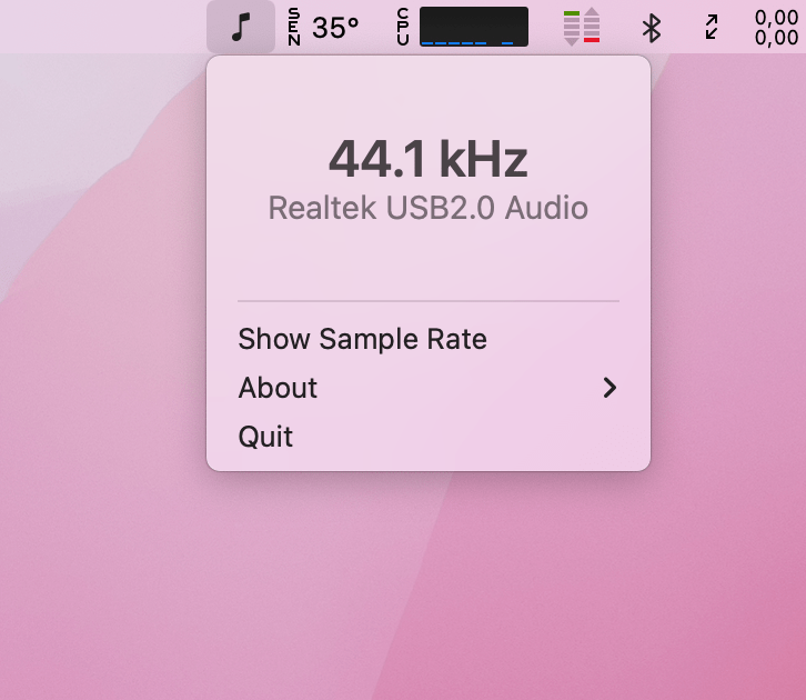 LosslessSwitcher gets around this by checking the sample rate of songs being played in the Music app at all times, and then changing the audio output format in the Audio MIDI Setup app automatically. The current sample rate will also be displayed in the menu bar for you to check.