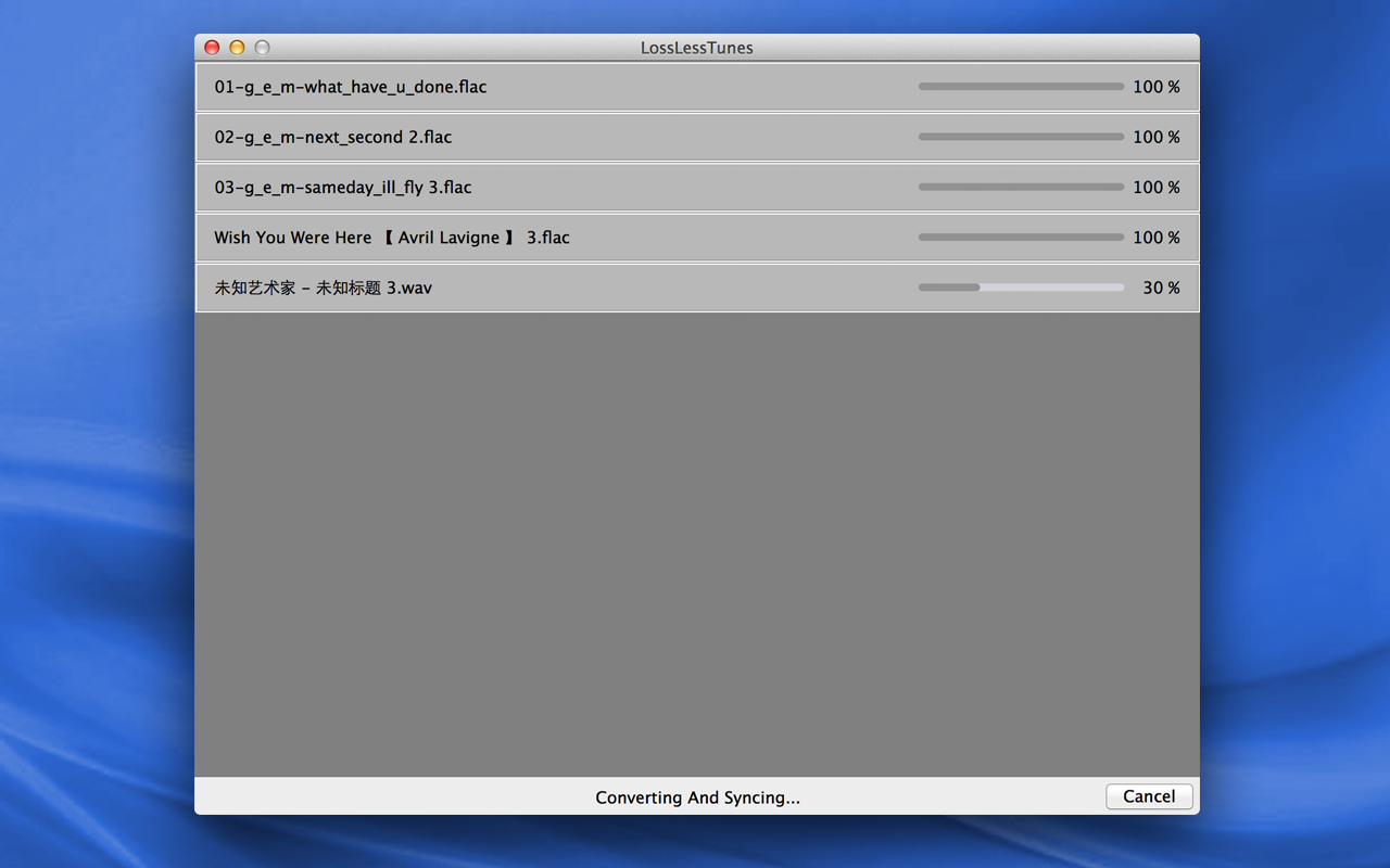 – All you need to do is dragging your songs into LosslessTunes. It will convert your songs to iTunes automatically.