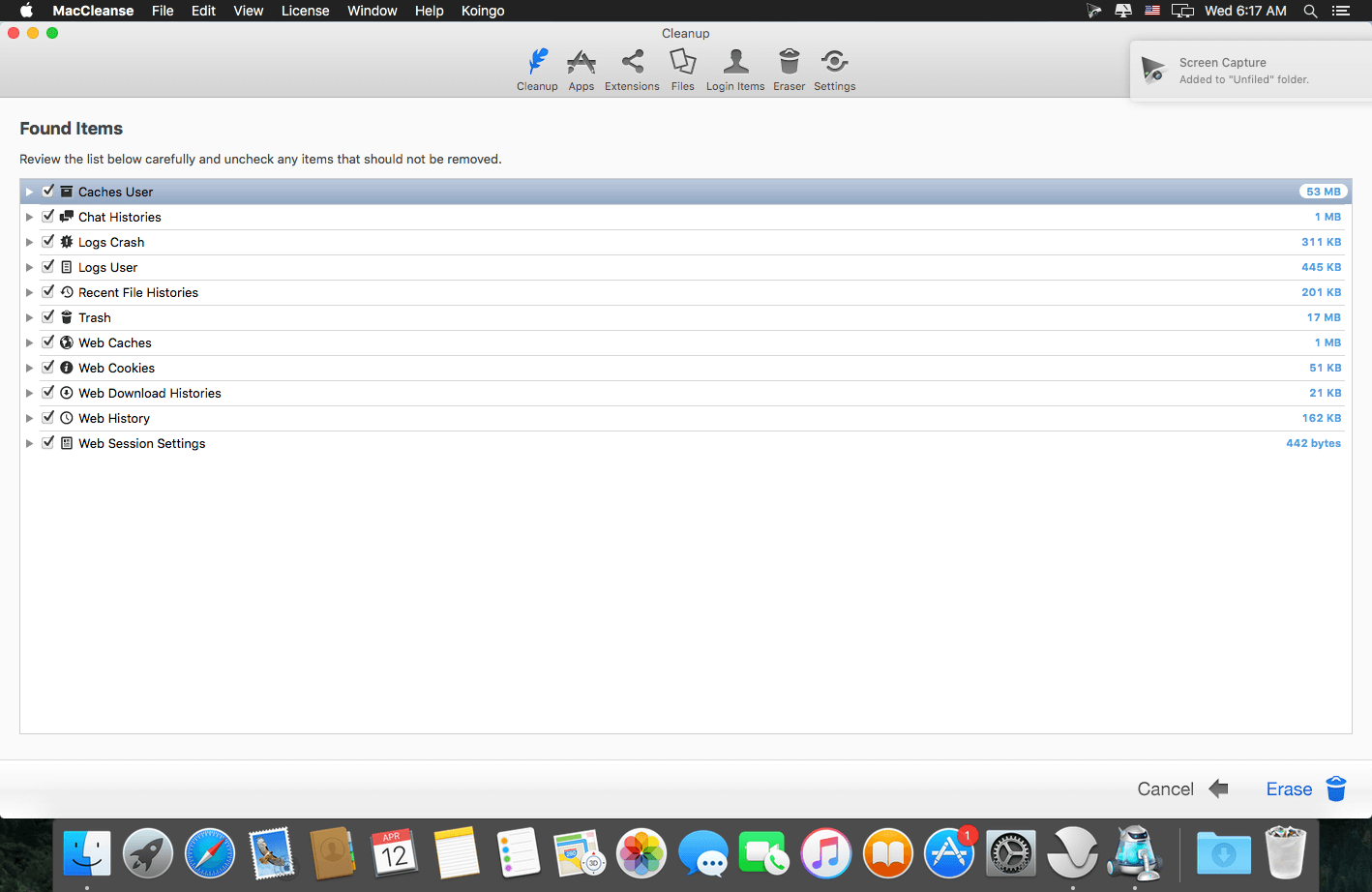 MacCleanse is the product of thousands of hours of intense research and development. It meticulously scans all of the nooks and crannies of a computer for unnecessary junk that can take up huge amounts of disk space! Because of this, Apps in MacCleanse are also uninstalled correctly, catching the numerous logs, caches, plugins, and other resources left behind versus simply dragging them to the Trash. Your privacy is protected and computer performance enhanced by MacCleanse as it wipes your web and app histories, and can toggle resource-hungry extensions!