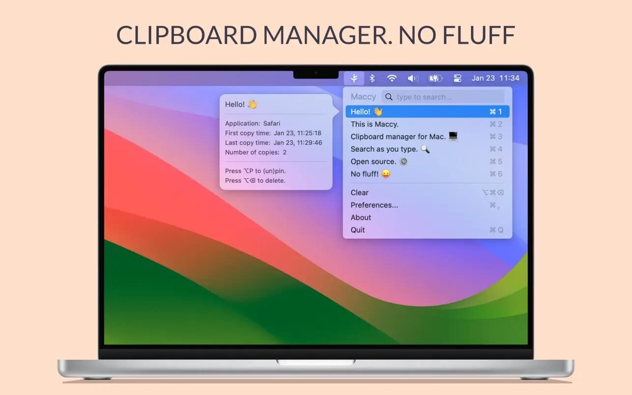 Maccy is an excellent choice for users who want a simple clipboard manager that remembers text you have copied previously. It isn’t bloated with unnecessary features, and it is free and open-source.