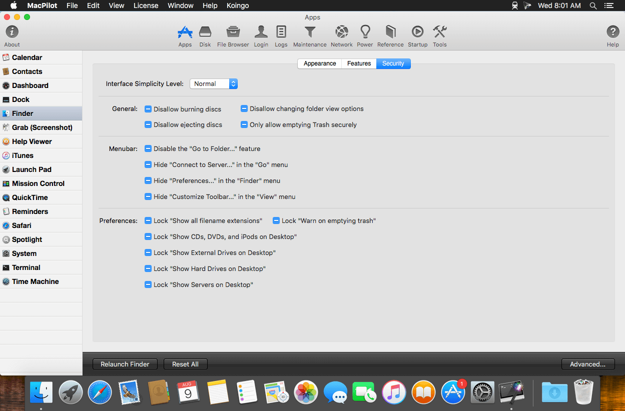 Get out of the passenger seat and take control of your Mac. Set your login window picture, use the screensaver as your Desktop, modify advanced file permissions (ACL), change the system welcome message, enable simultaneous recordings in QuickTime, view system logs, or enable the Debug menu in numerous apps.