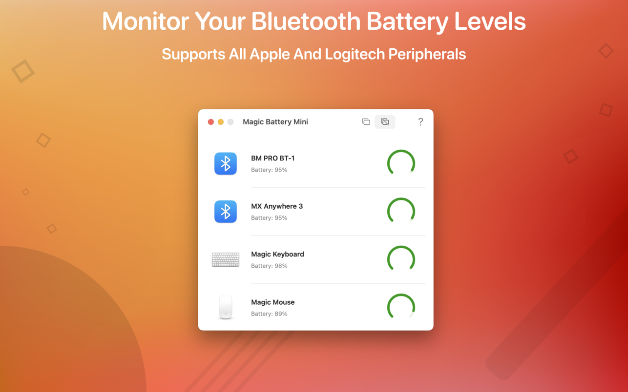Magic Battery Mini shows the battery level of supported input devices that are connected via Bluetooth.