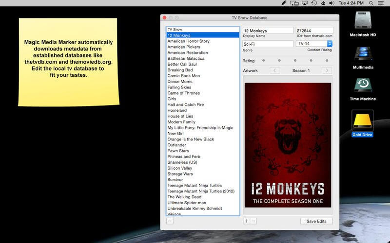 Magic Media Marker gets it’s metadata and artwork from powerful, established databases. For TV Shows Magic Media Marker pulls information from thetvdb.com, and uses themoviedb.org for Movies. With these two resources Magic Media Marker is able to quickly pull accurate results back for even more obscure titles.