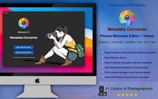 • Easiest way to reads & writes GENERAL, EXIF, GPS, IPTC, XMP, DATE metadata and more…