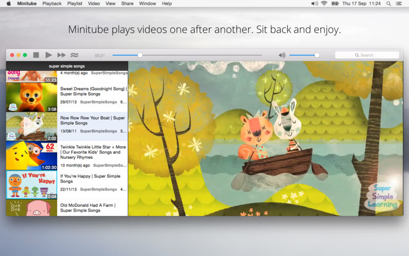By automatically playing videos one after another, Minitube aims to create a TV-like experience. Stop fiddling, just sit back and enjoy.