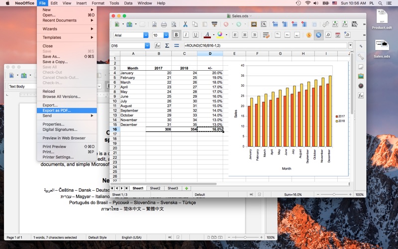Two engineers created NeoOffice in 2003 when they made OpenOffice run natively on OS X for the first time. Since then, the NeoOffice engineers have continually added improvements to NeoOffice that you will not find in OpenOffice or LibreOffice such as: