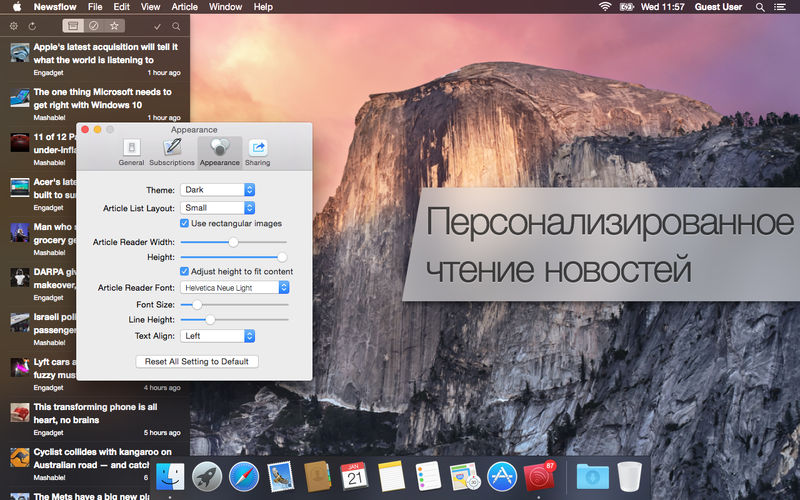 - Beautiful themes (including night mode) and fully customizable news reader appearance
