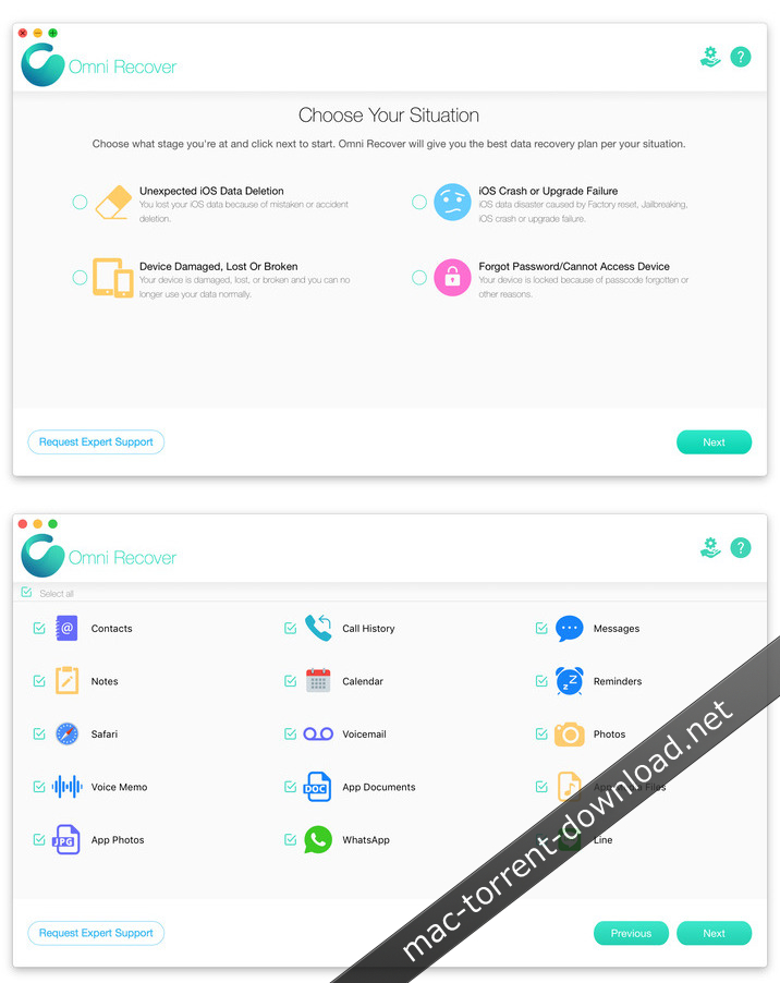 No Matter The Cause, We’ve Got You Re-Covered – iPhone data are vulnerable to sudden and casual iOS disasters. For instance, deleting photos on iPhone is permanent, and when you slide to delete a message thread, there’s no Trash bin for retrieving it. Now with Omni Recover, you can have peace of mind knowing all your iPhone, iPad, and iPod touch files are easily recoverable. From iPhone water damage, to man-made accident, Omni Recover will give you a hand in recovering your lost iOS data, regardless of the cause.