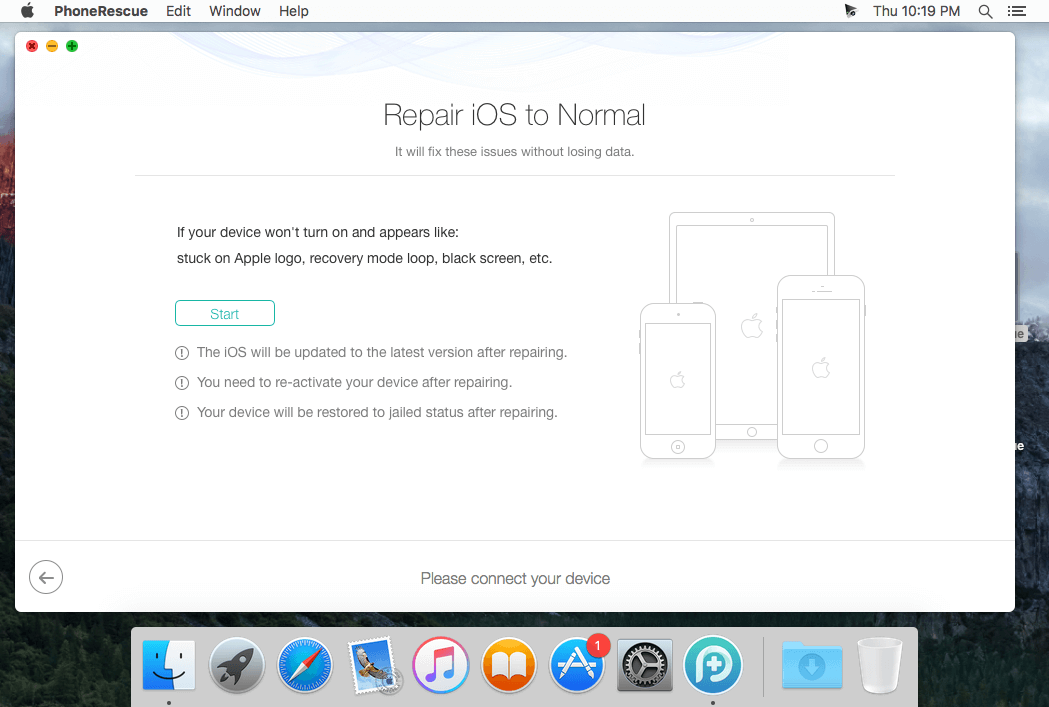 - Fixes any iOS error within a single click to revive your broken iPhone
