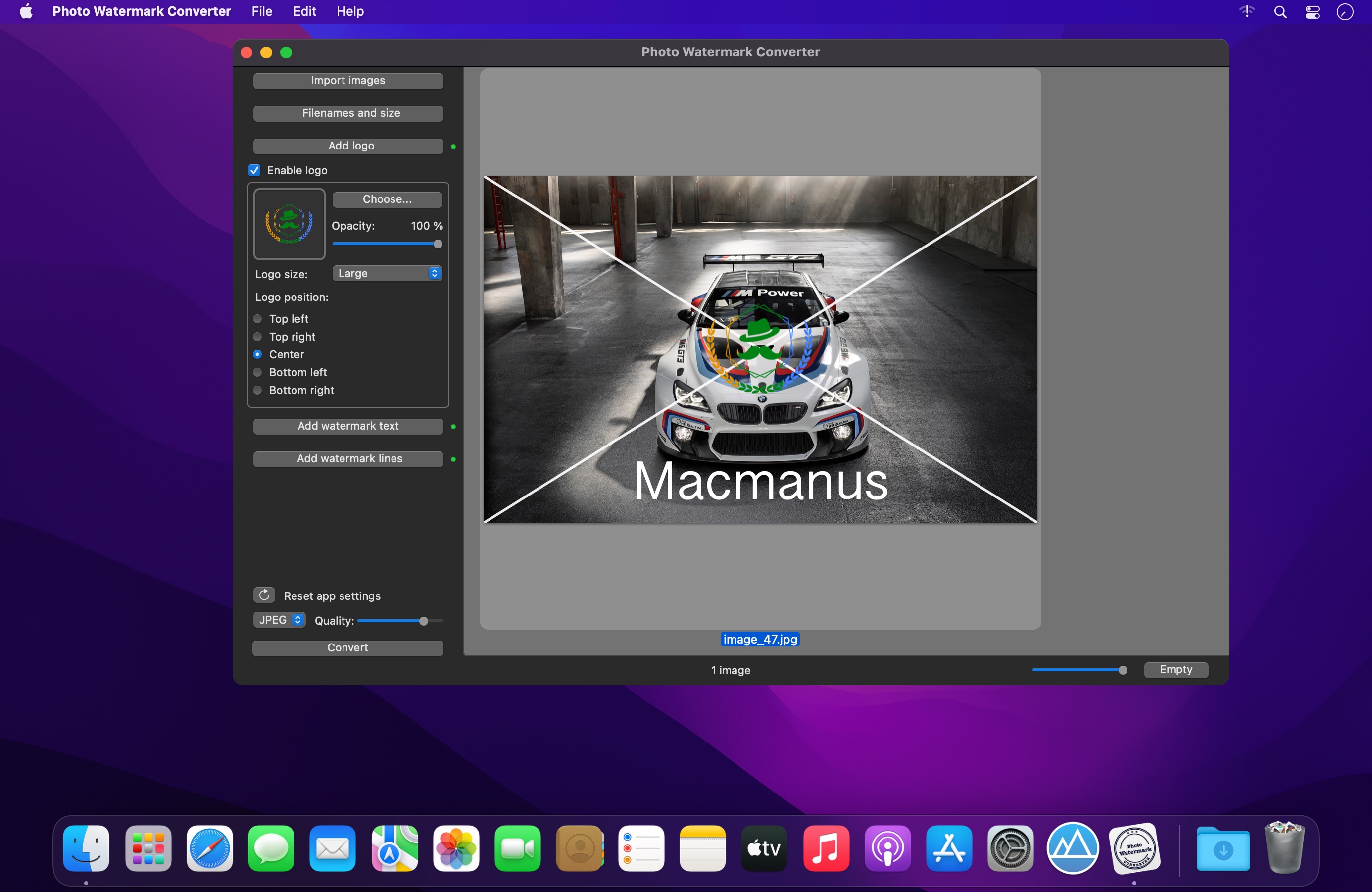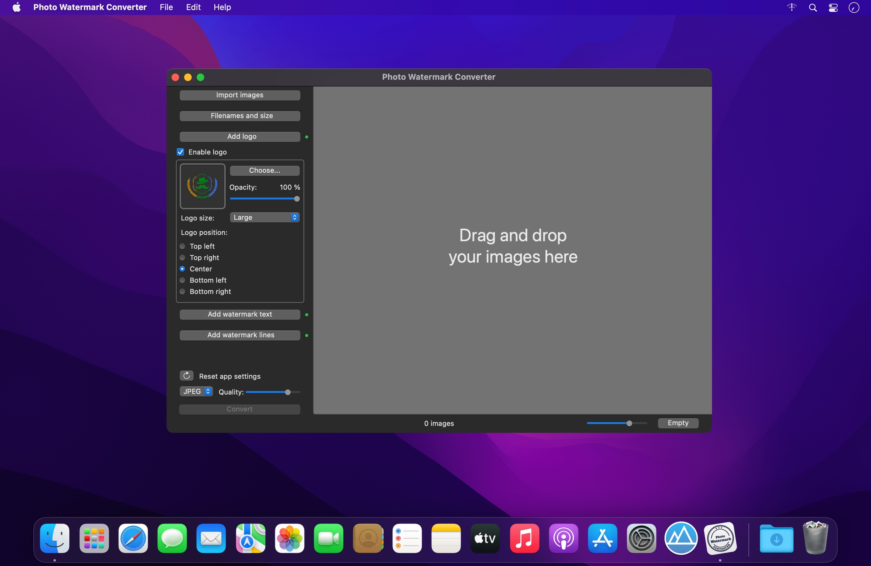 Photo Watermark converts multiple photos at once and is particularly useful to photographers, designers, and people who just want to have fun with their photos or upload them online and protect them with watermarks. Most important, it converts hundreds of images at once – so now you don’t have to convert every photo separately.