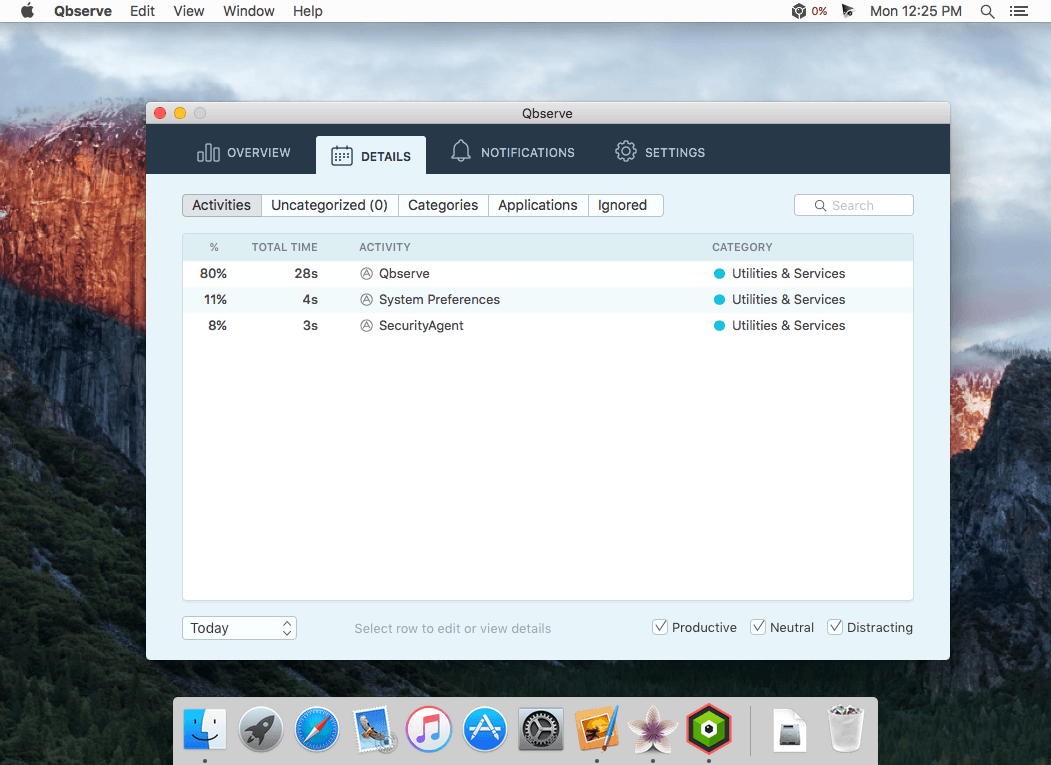 Qbserve knows productivity rates for thousands of sites and apps and has a unique ability to differentiate between chats in Skype, Slack, and Telegram, YouTube videos, and subreddits. You can also set alerts to notify you when you are reaching your goals or spending too much time on distractions.