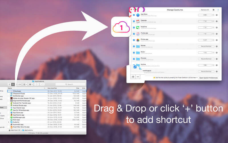 - Fully customizable: application allow to add, rename, delete shortcut of any applications, folder, files in your Mac.