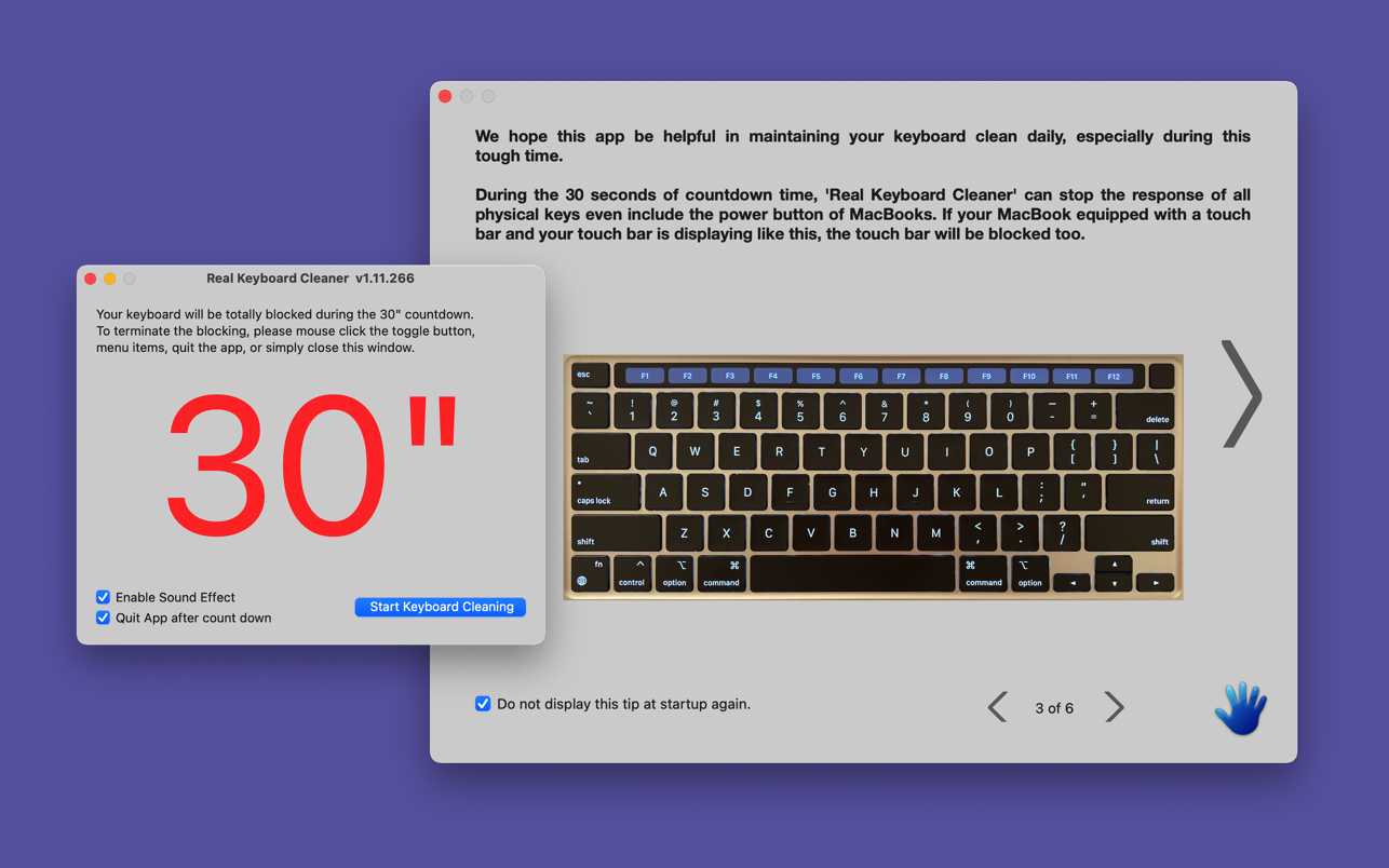 All keys and hotkey combinations will be blocked – even the power button and most of the Touch Bar keys, so you can clean your computer without needing to shut it down. We hope this app be helpful in maintaining your keyboard clean daily, especially during this tough time.