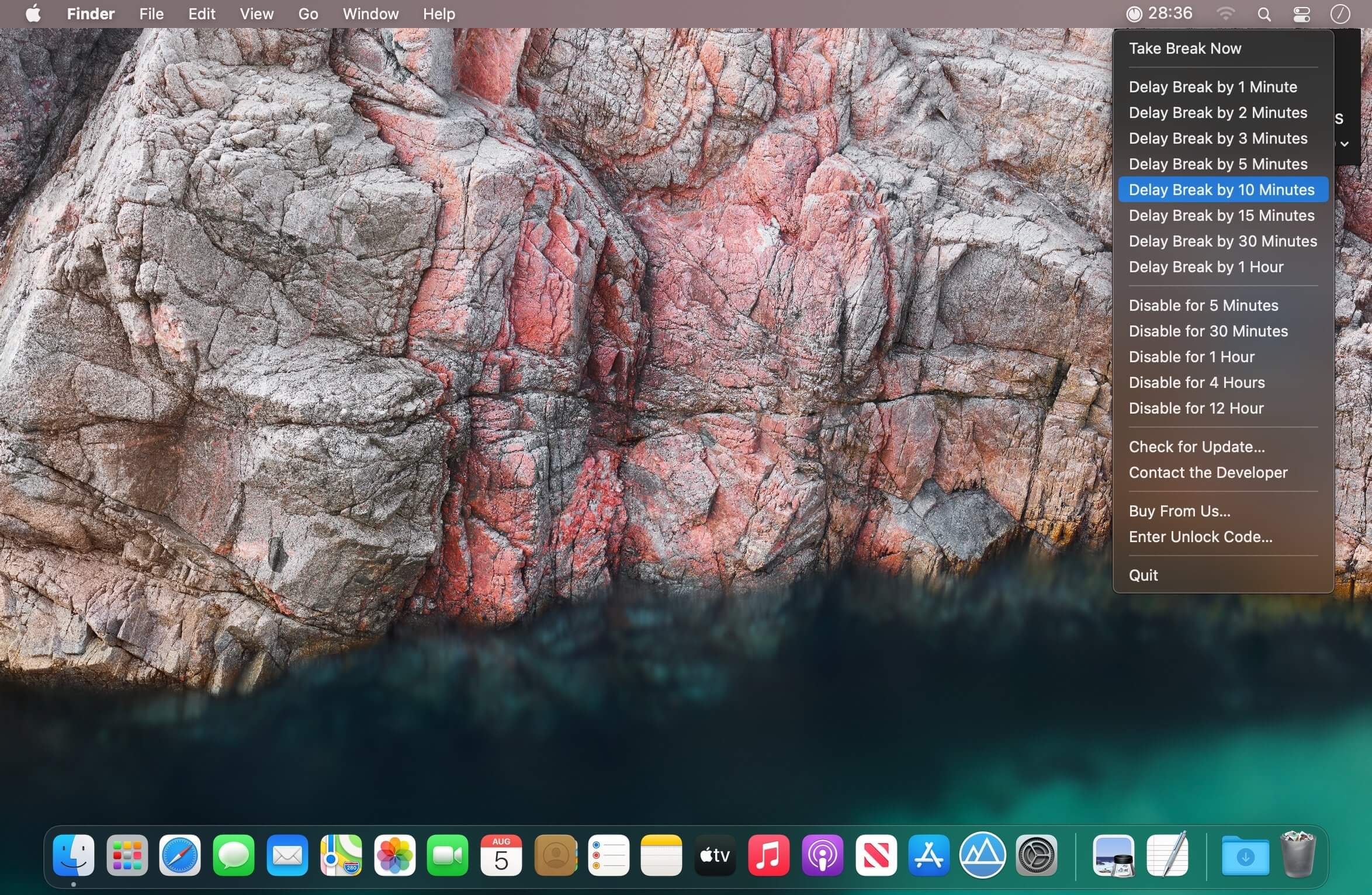 Rest Time lives under an icon in your Mac’s menu bar and pays attention to how long you have been working, so that you don’t have to. Unlike other products, it does not require privileged access that might put your privacy and internet security at risk.
