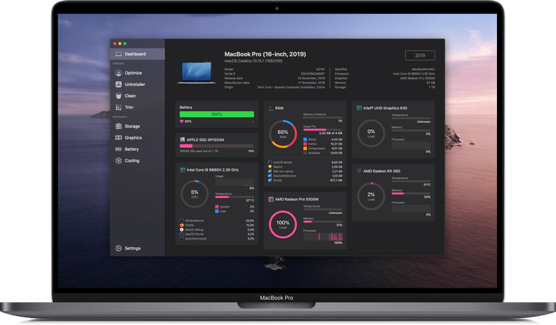 Sensei is an app that spans both software and hardware, including many more features than other apps in the Mac optimization category. It includes features for cleaning your disk, uninstalling apps, analyzing battery and disk health, monitoring CPU/GPU/RAM statistics, optimizing boot startup speeds and much more.