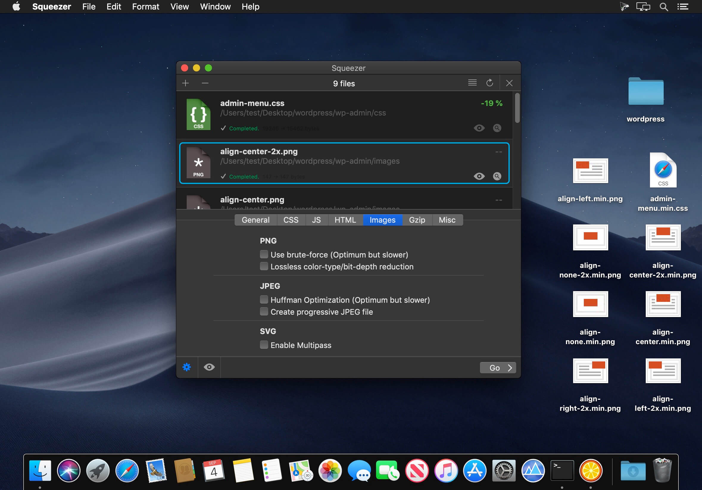 - Optimize/Compress images: PNG, JPG, SVG