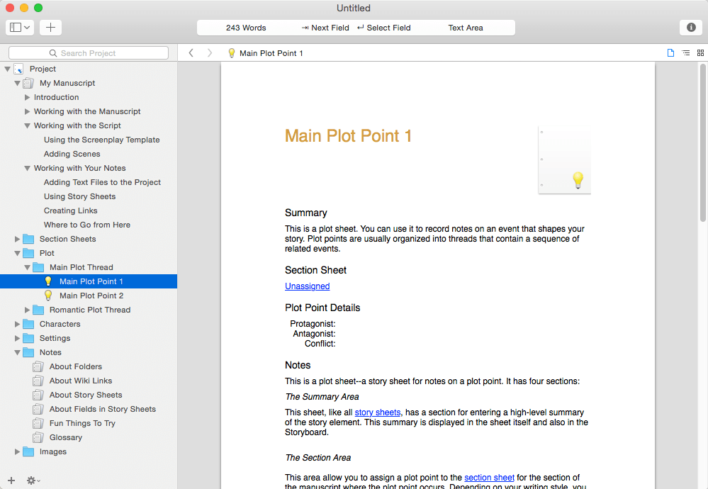 - Work with your story at a high-level. Storyist lets you sketch out a story using index cards and then refine it with customizable plot, character, and setting sheets.