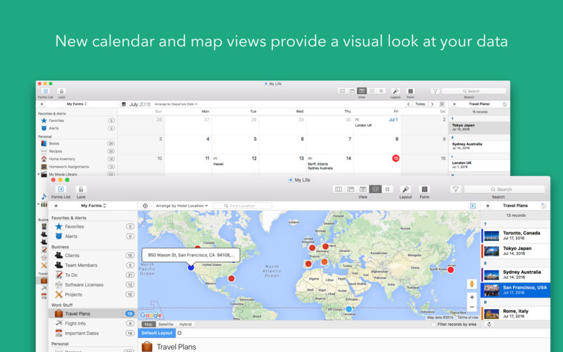 Tap Forms helps you organize all kinds of things in one place – secure, searchable, and accessible on your Mac (iOS + Apple Watch app sold separately). How can one app organize everything? Because not only can you use and customize the 33 built-in templates but you can create your own “forms” for inputting any kind of information, even if that information includes pictures, doodles, audio recordings, calculations, file attachments, ratings, or even links to other forms. This makes it almost like building your very own customized organization app.