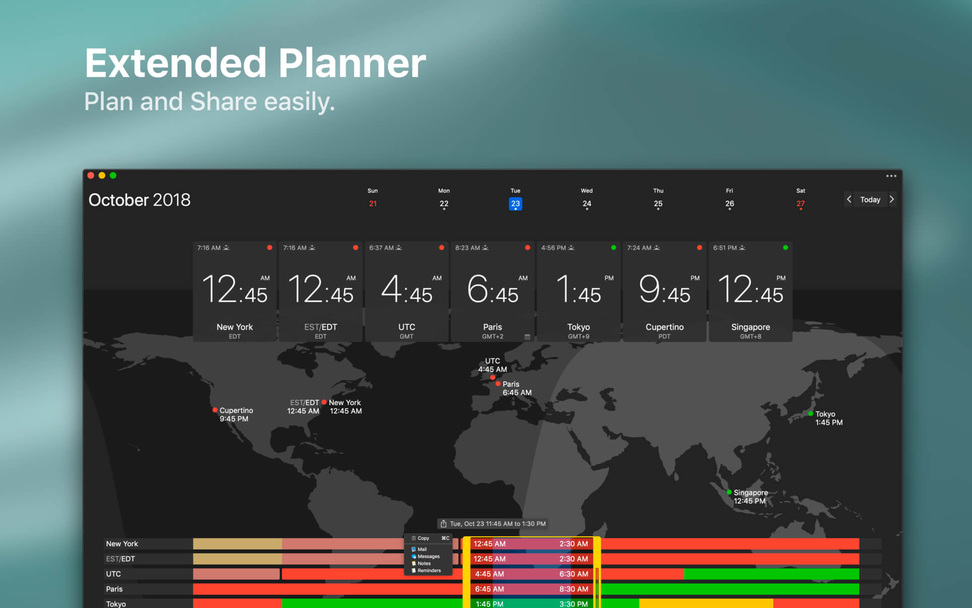 - Export easily your schedule information by a simple copy/paste or share menu or Drag & Drop.
